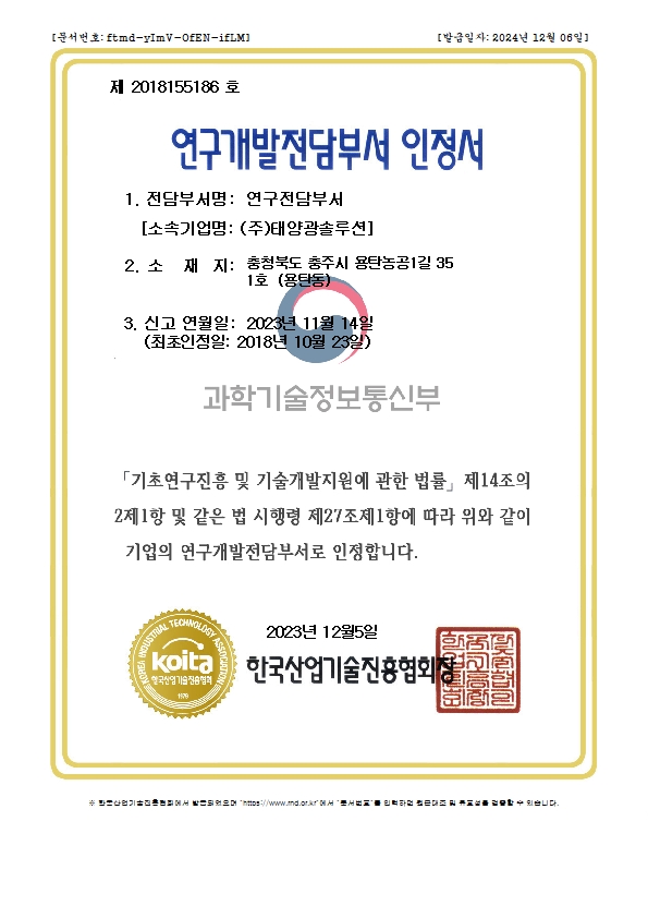 연구개발전담부서 인정서